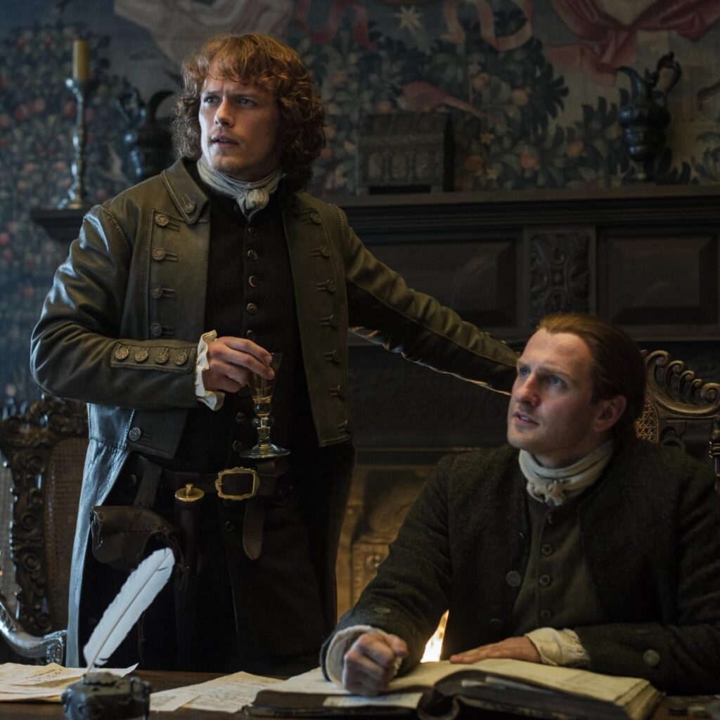 This theme comes to life in this episode, first as we glimpse both Brian Fraser in the leather coat we’ve seen passed down to Jamie before, and as Old Ian gifts Young Ian his tweed coat upon his departure as a memento.