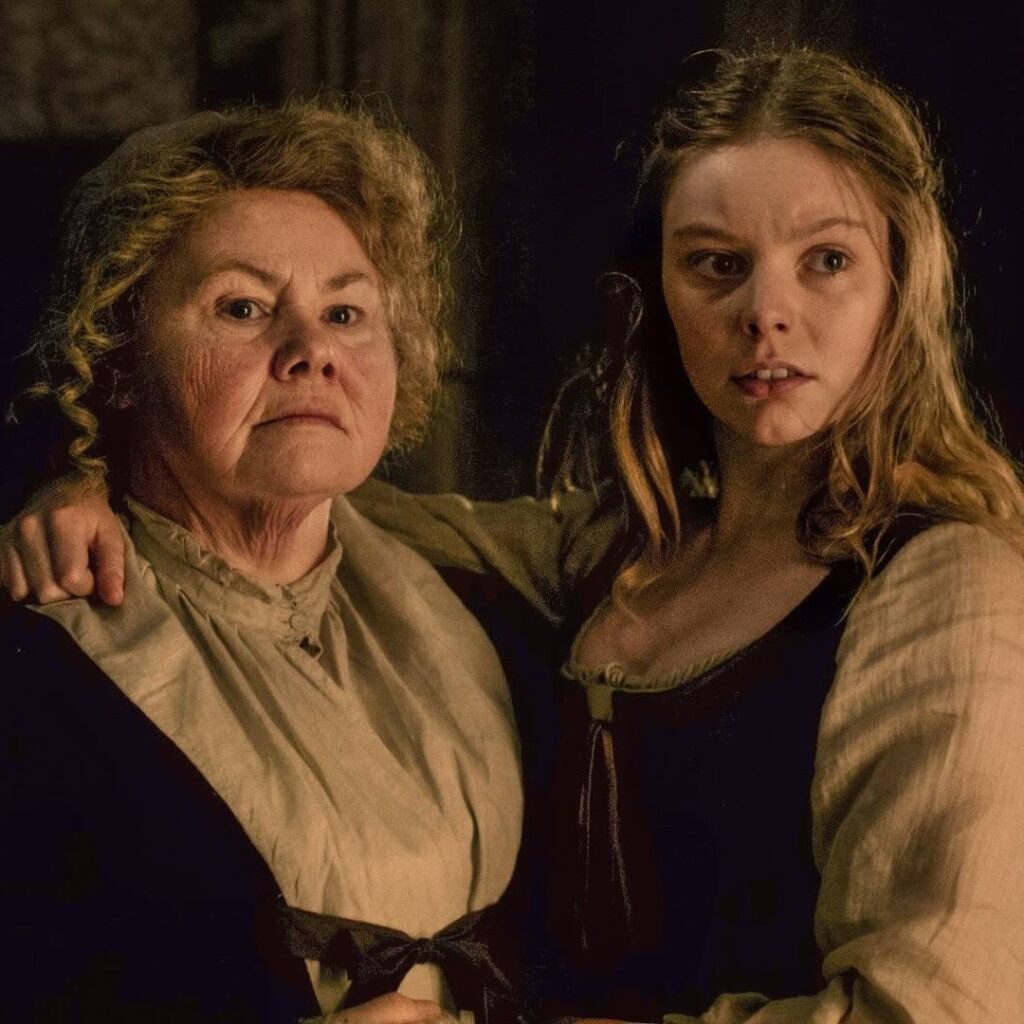 As for Laoghaire’s current wig… the team keeps it in the family. It once was worn by Annette Badland when playing Mrs. Fitz, Laoghaire’s grandmother, in Season 1!