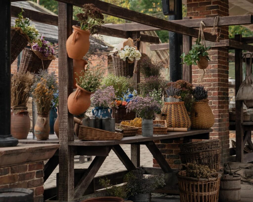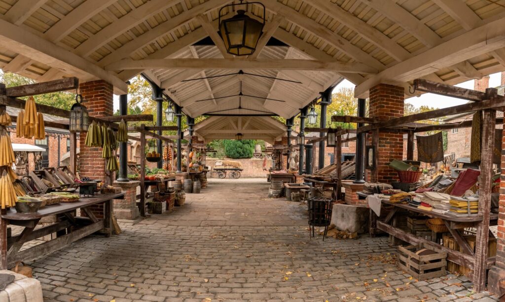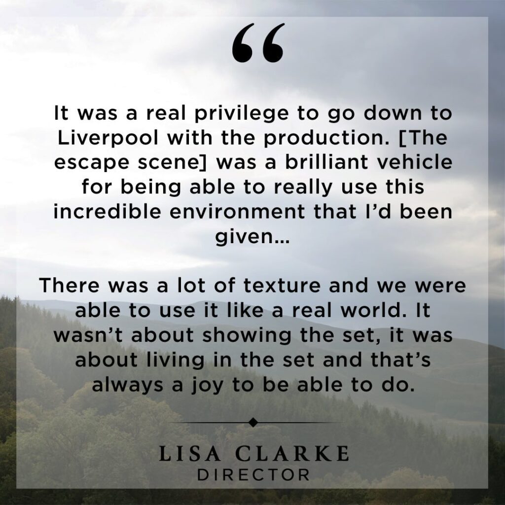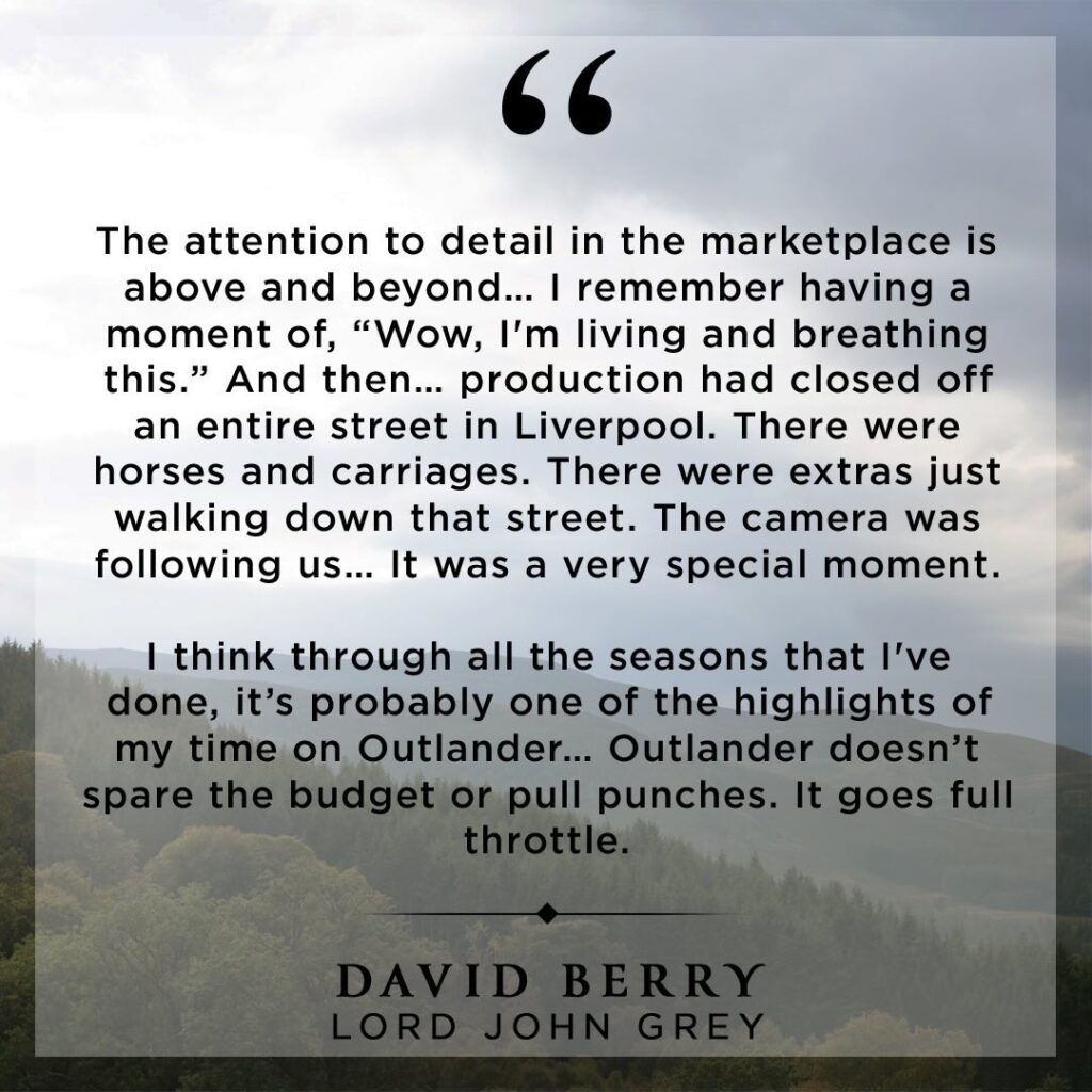 The market set that Jamie escorts John through wasn’t just a feast for the eyes on screen, it was a feast for the eyes in real life too. All departments worked together to create a physical world for the cameras to play in.