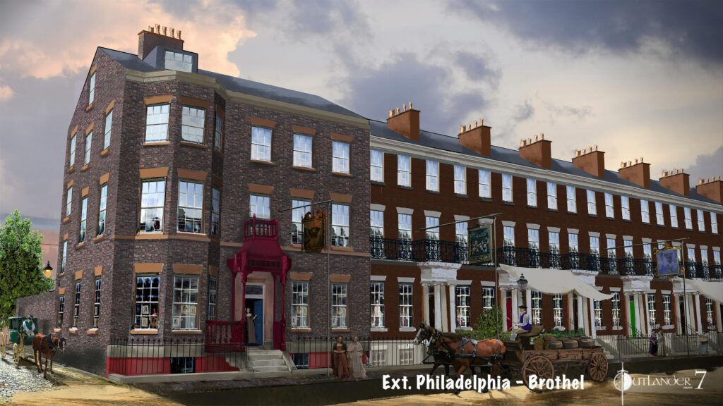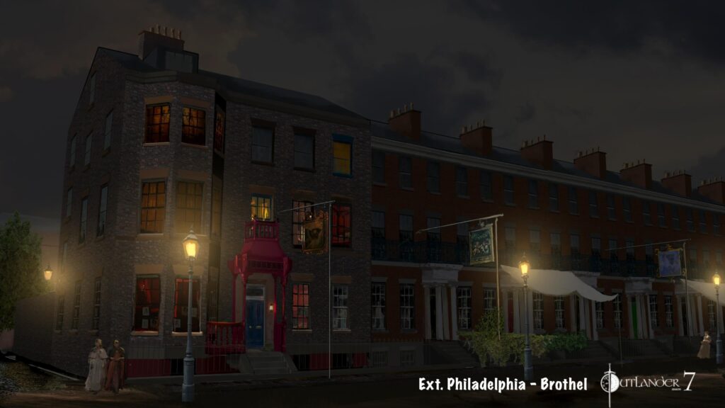 Another Easter Egg: some of the background signs display the names of our hardworking and talented Outlander crew!