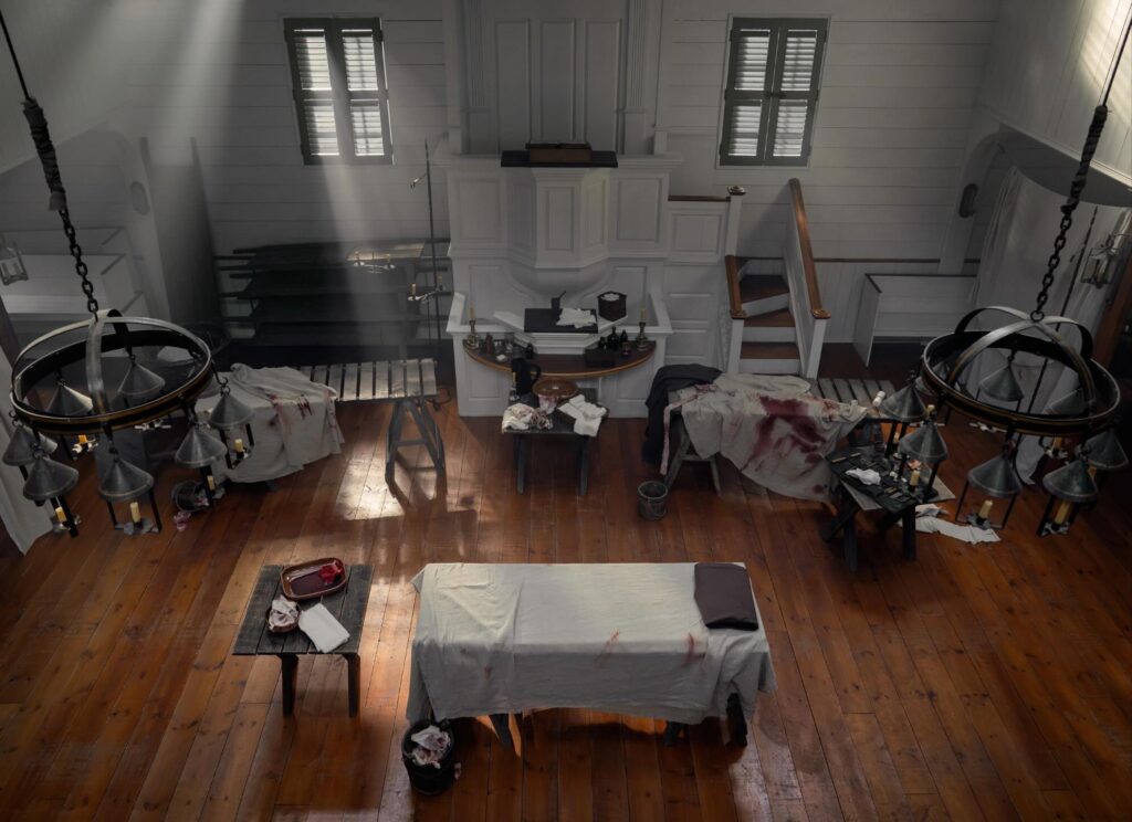 The Old Tennent Church is actually a very real church that still exists today that was indeed used as a hospital during the 1778 Battle of Monmouth.