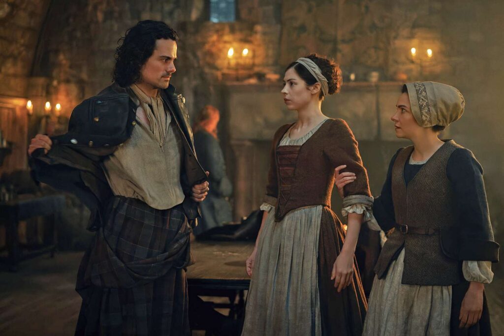 On their way to the apothecary, Brian and Julia tentatively open up to each other. Brian makes the final leap and confides in her about Ellen. The two go to Leoch where Julia acts as a servant so she can be taken into the castle by Glenna and get a message to Ellen. In exchange for her part, he’ll get her away from Castle Leathers especially since she’s pregnant.