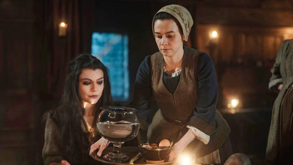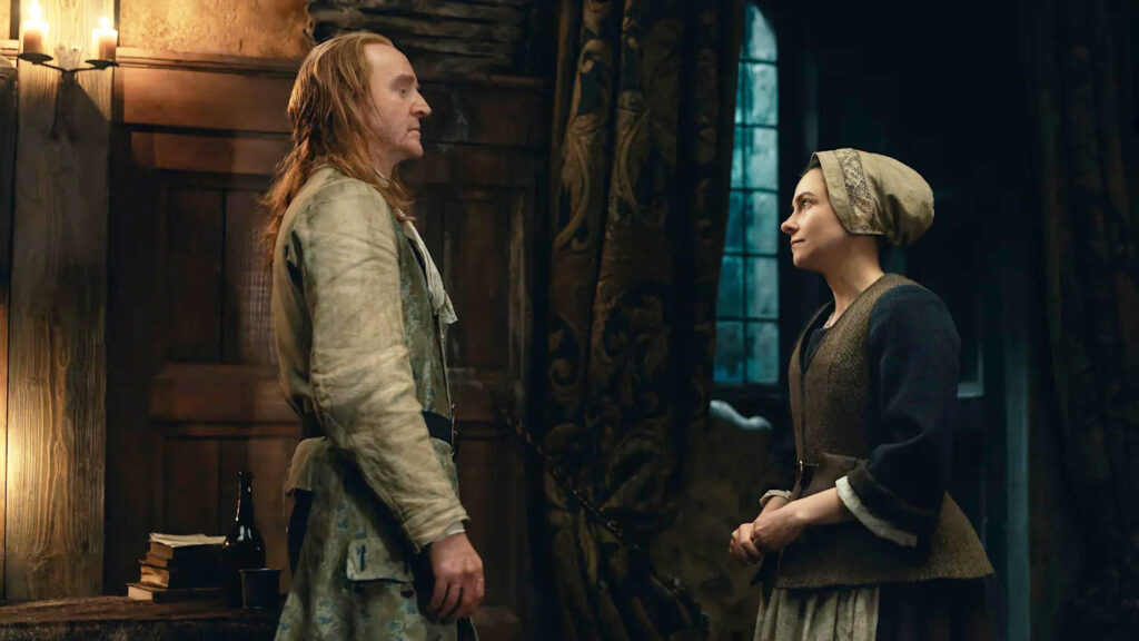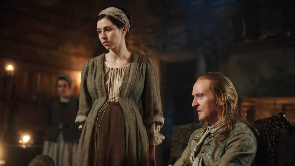 So Julia is stuck, unable to get to Beltane, and the possibility of getting home. Simon summons his seer—who Claire meets in The Fox’s Lair. Maisri the Seer either doesn’t know the child isn’t Simon’s or she knows something we don’t because she focuses on it being a boy. When Julia cracks the egg there are two yolks. Maisri sees the first as a girl fitting Claire’s description while the second is a boy. He will be powerful and will end up being king. Simon believes that the Fraser king prophecy is true. And we’ve heard about this prophecy in Outlander. Geillis is working off this prophecy. She connects it to Jamie and then Brianna. Maybe Maisri is connecting the prophecy to Claire or maybe Julia’s baby isn’t leaving this time.