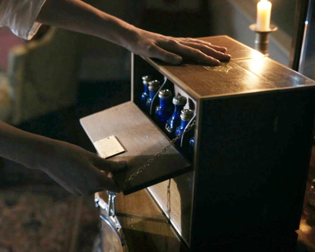 Bree is pouring herself some win when Rob Cameron startles her by saying, “Tell Jem the Spaniard got you.” Rob’s there for her because Jem won’t tell him about the Spaniard. Bree tries to grab a knife but Rob wrestles it from her. His plan is for them all to go to America where they will find the Spaniard and get the gold.