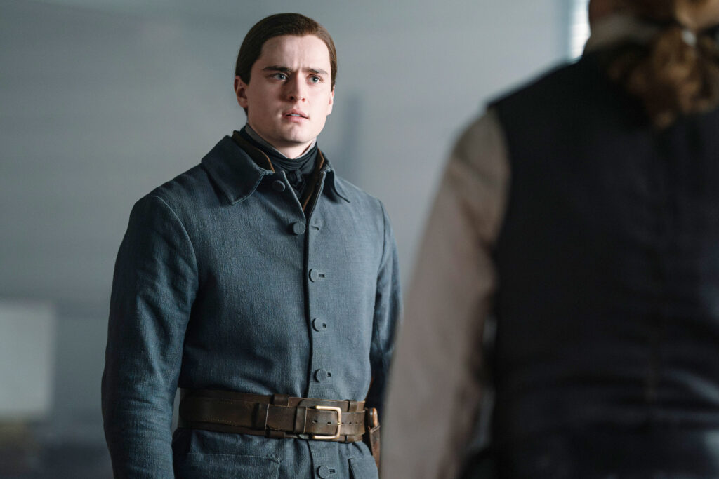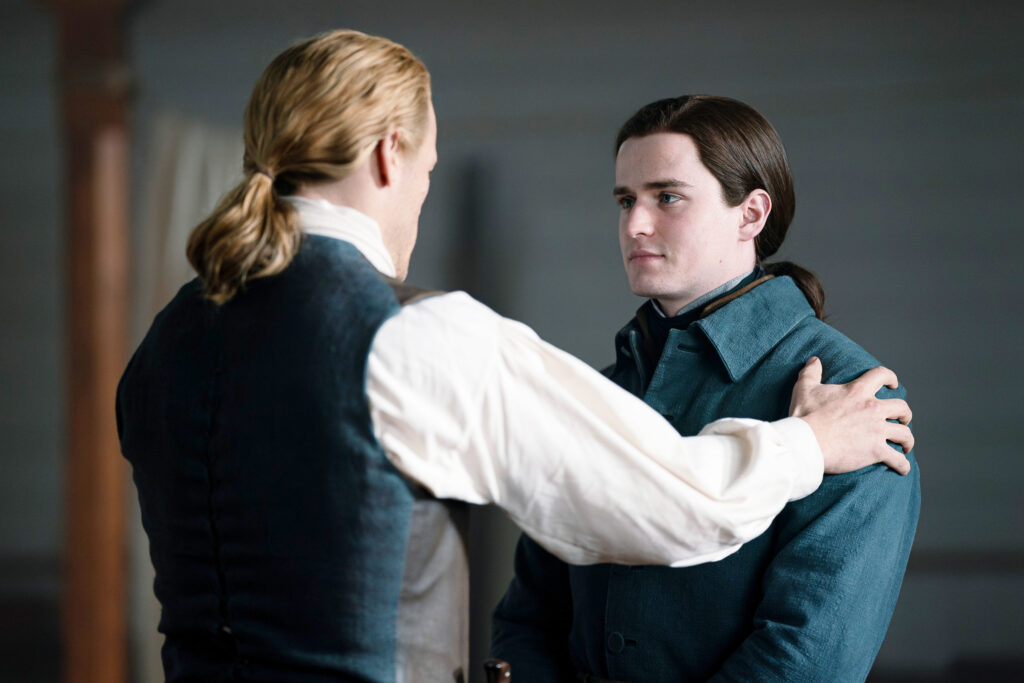 Back in 1778 at the Church, Claire needs Jamie’s assistance when there is a knock. Jamie answers and it is William. He asks for help. Jamie asks him to tell him. Jamie goes in to tell Claire William has come to ask him for help and she tells him to go.