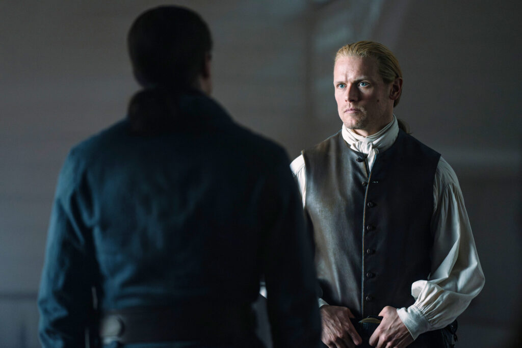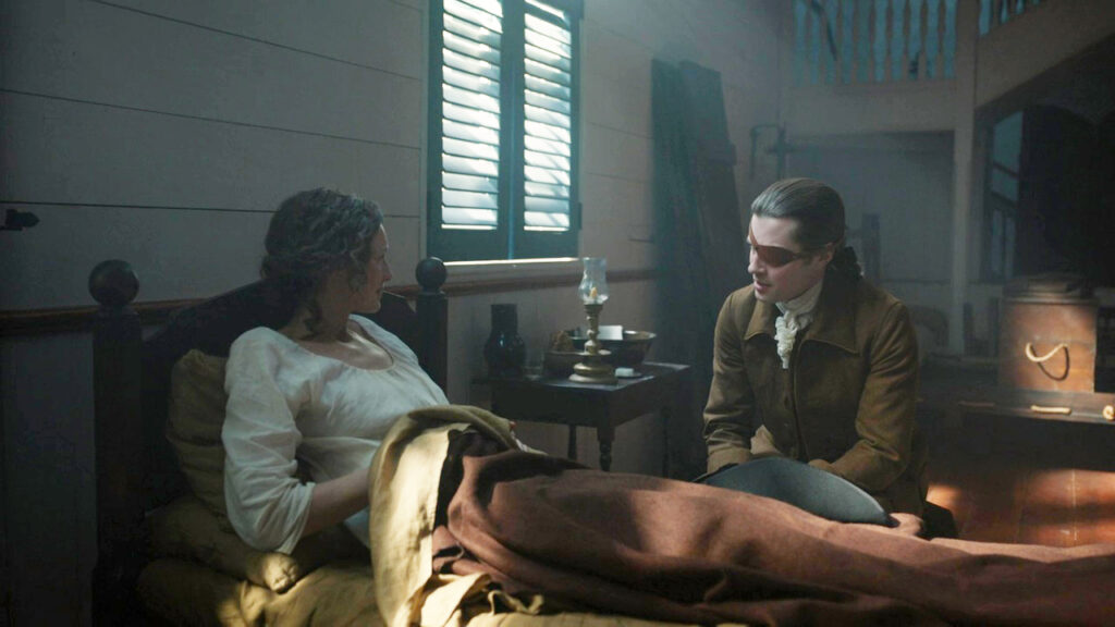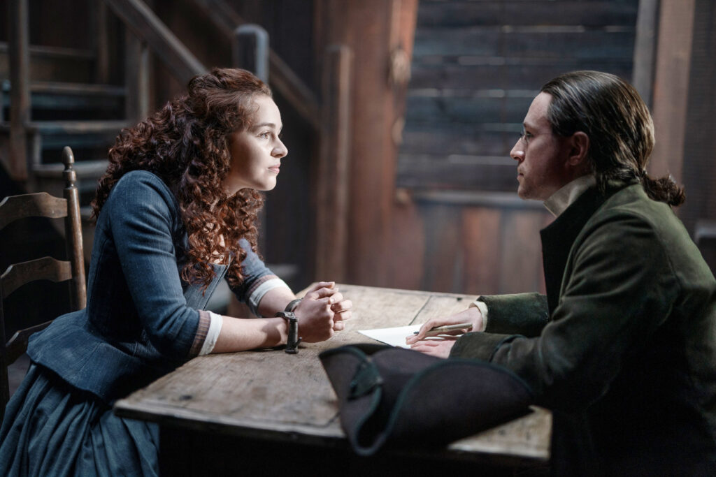 Meanwhile in1778, Lord John comes to visit Claire. I love how they’ve both softened towards each other. I always felt in the books that Claire and John started to like each other more after all of this stuff happened.