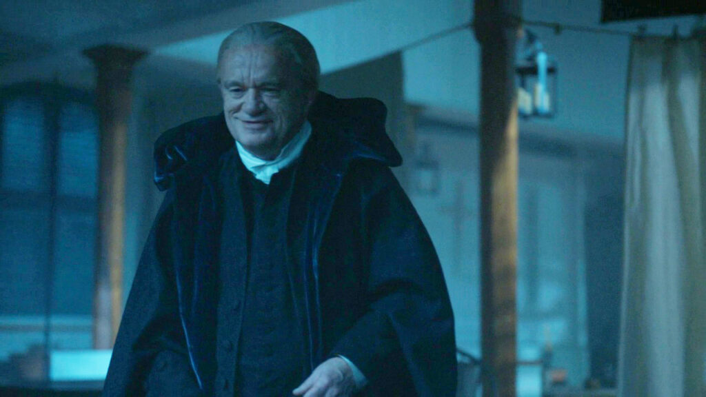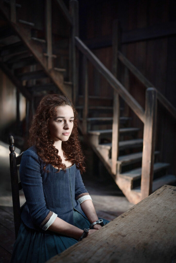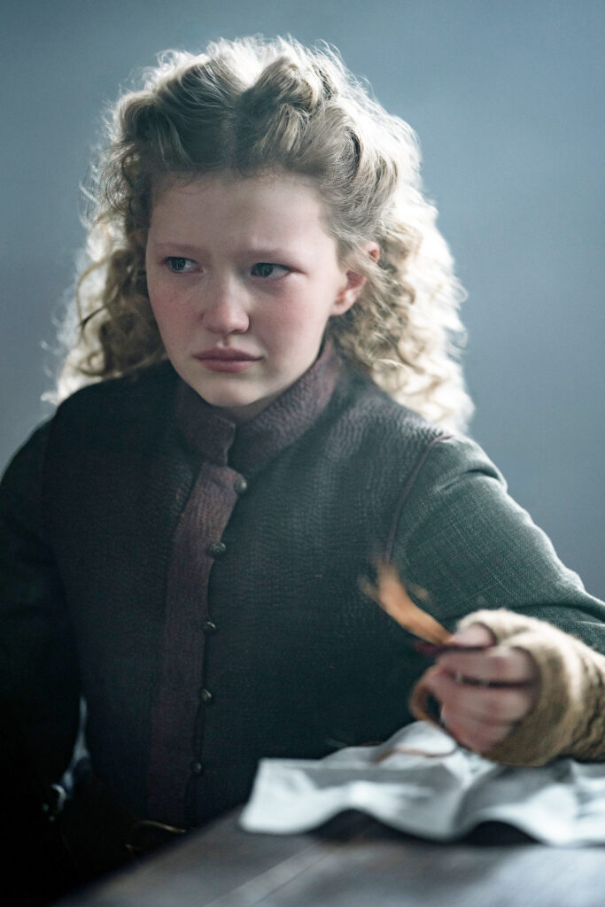 “They actually did get the (general) idea from me, though,” she admits. “When chatting with [showrunner] Matt [Roberts] about All Things plot wise, I mentioned that if I had written a second graphic novel (I didn’t, for assorted reasons), I would have shown what actually happened after Faith’s presumed death at the Hopital des Anges, and how/why Master Raymond resuscitated and nurtured the baby secretly, but wasn’t able to come back with her before Claire and Jamie left France. So, they liked that idea and ran with it.”