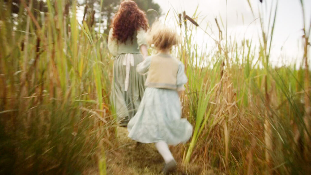 A Hundred Thousand Angels opens with Jane and Fanny chasing dragonflies with whom we must assume is their mother. Jane is remembering these things as she is questioned by a journalist regarding Harness’ murder. Jane conveys her lack of remorse saying her only regret is he’s not alive for her to kill again (nice Jane). The journalist plays on her love of her sister to get her to talk to him.