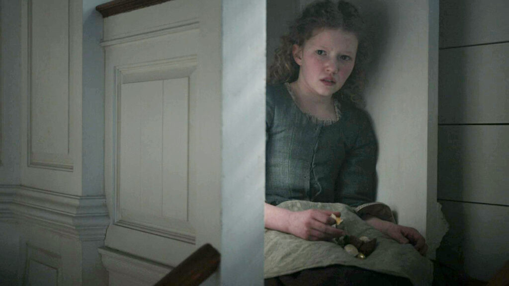 The next day, William brings Fanny to Jamie and Claire. They have her sit, and Jamie gives Fanny Jane’s lock of hair. Jamie tells her she can live with them on the Ridge, and he’ll take care of her. He promises her she’ll be safe, and no man will take her against her will.